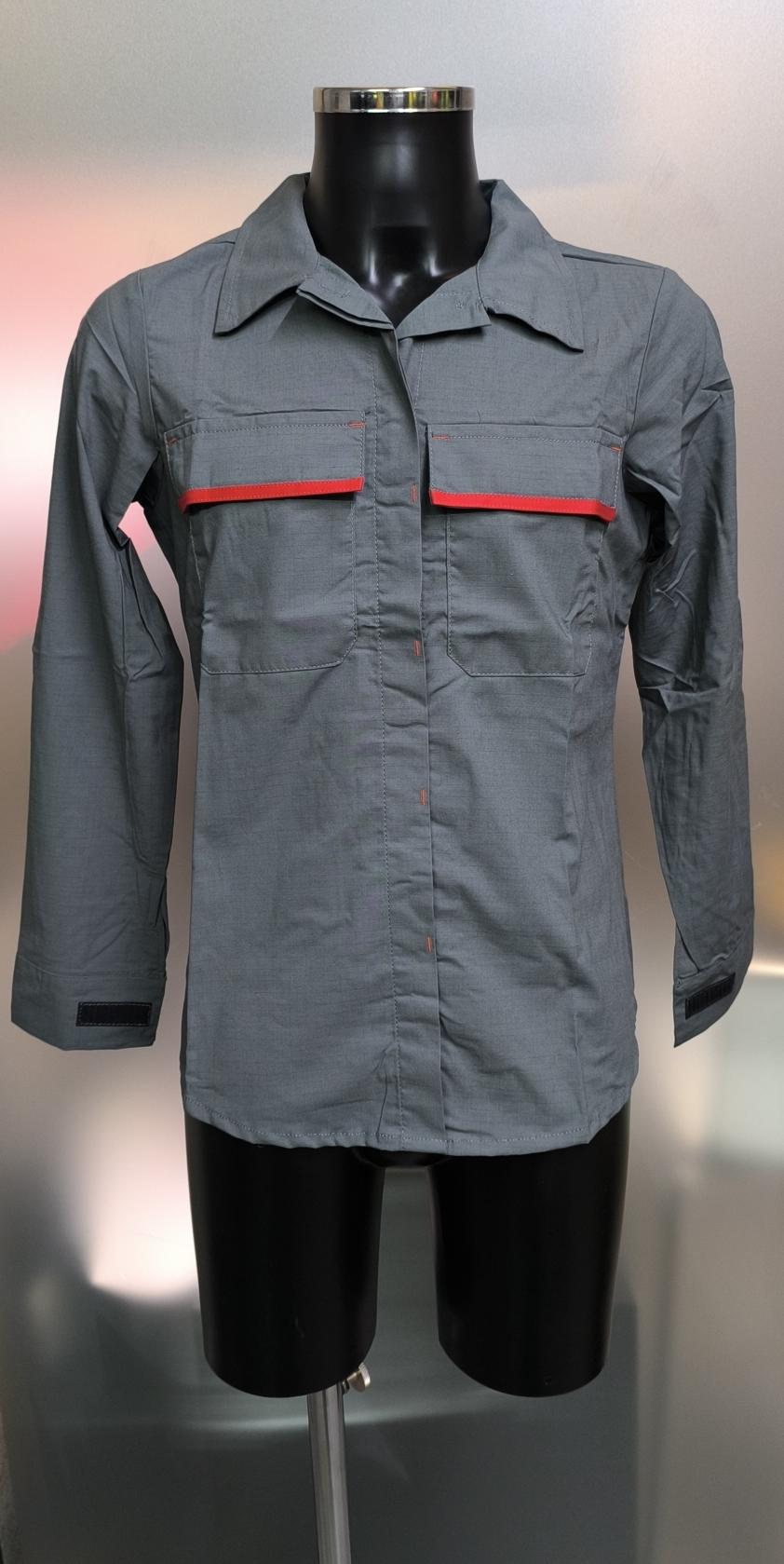 Camisa con cierre de botones ocultos. Dos bolsillos superiores exteriores con tapillas con cierre