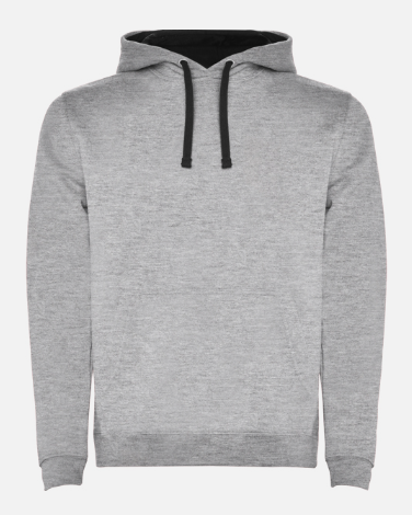 Sudadera con capucha de doble tejido, con cordón ajustable, en acabados solido y bicolor. Cubrecosturas en el cuello y bolsillo canguro. Punto canalé con elastano 1×1 en puños y cintura. Modelo de niño sin cordón.